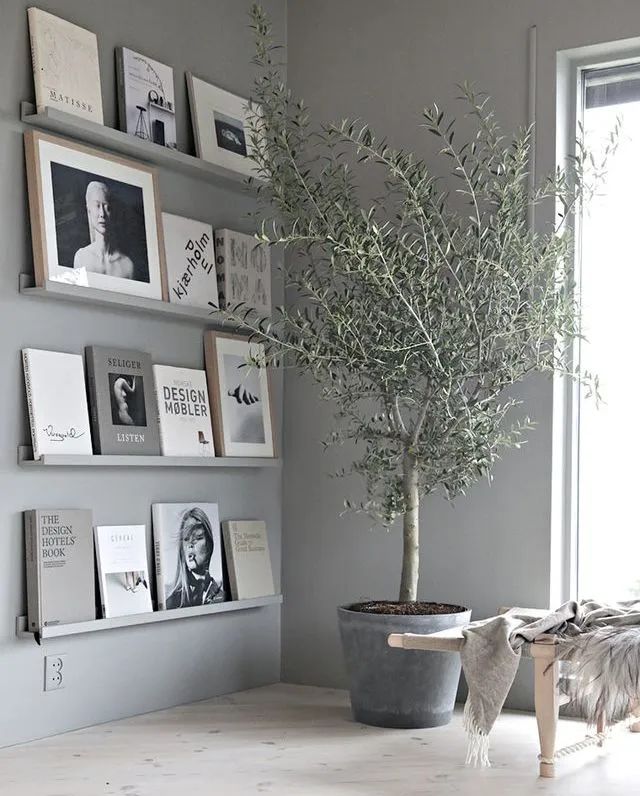 單調(diào)背景墻,放一盆油橄欖,