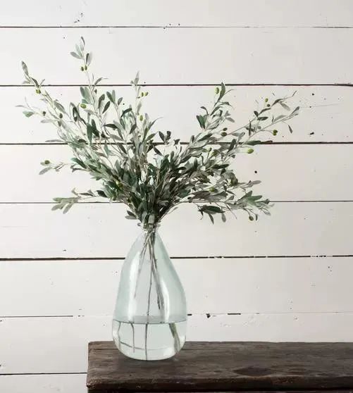 修剪后的枝葉放玻璃花瓶,