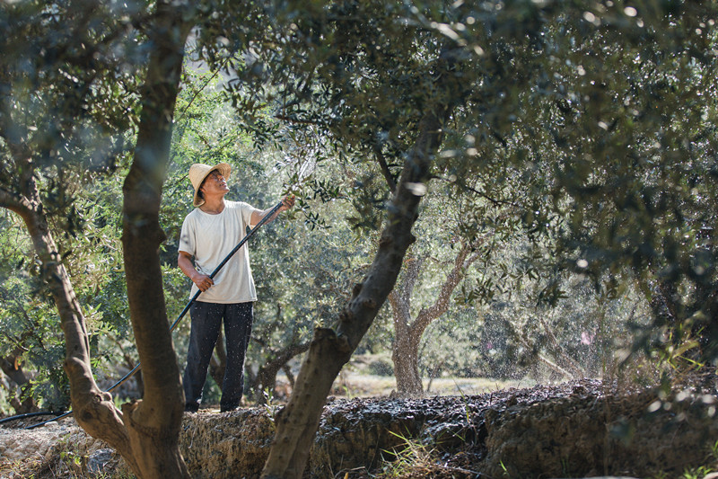 在炎熱干燥的季節(jié),農(nóng)戶會(huì)及時(shí)為油橄欖樹送來(lái)生命的甘泉。