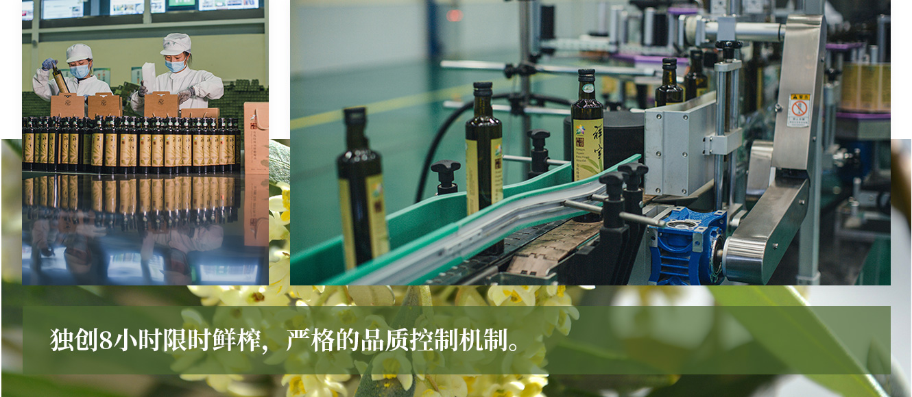 公司通過“訂單農(nóng)業(yè)”模式,獨(dú)創(chuàng)8小時(shí)限時(shí)鮮榨,從手工采摘、按質(zhì)收購(gòu)、便捷運(yùn)輸、純物理冷榨、充氮低恒溫儲(chǔ)存、灌裝等全程管理,并通過嚴(yán)格的品質(zhì)控制機(jī)制,實(shí)現(xiàn)了真正意義上的莊園級(jí)特級(jí)初榨橄欖油條件。
